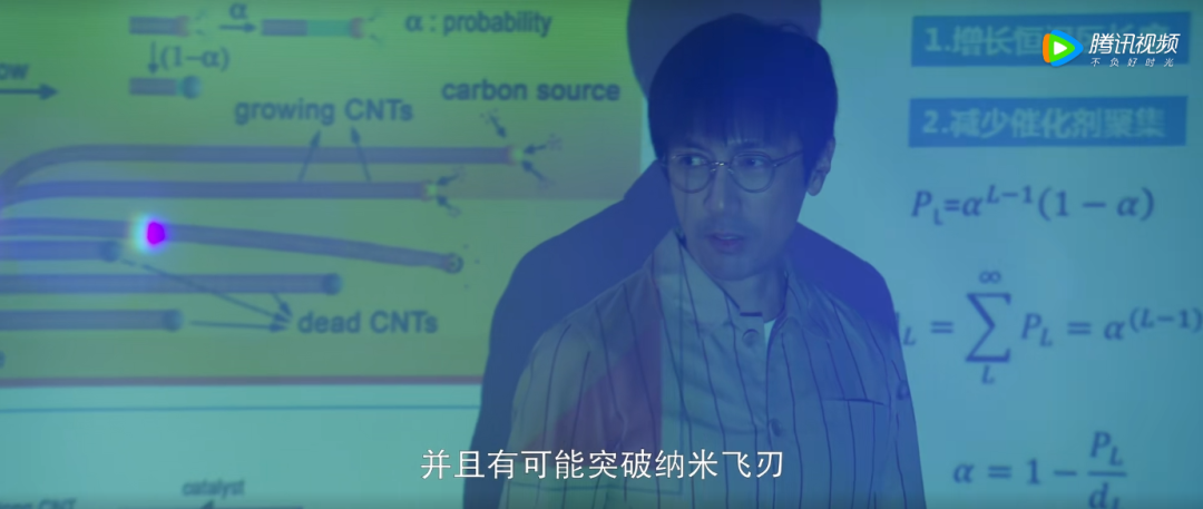 電視劇《三體》大受好評的原因,除了演員的精湛表演與忠于原著以外,其重要原因之一是劇中存在大量的細節(jié)可供考究。雖然劇中并未直接說明“納米飛刃”的原材料是什么,但是從汪淼所用PPT中我們可以看到CNTs的字樣。