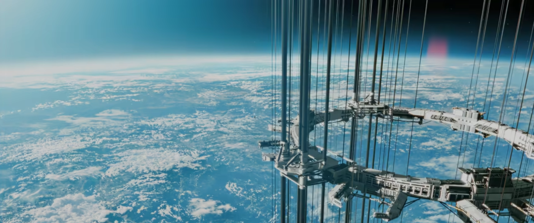 人類可以憑借太空電梯這項發(fā)明,輕易到達近地空間,使得在太空建造大規(guī)模防御體系成為可能。在《三體》電視劇中只是提出設(shè)想,在《流浪地球2》中將這一震撼的場面展現(xiàn)出來,讓人嘆為觀止。