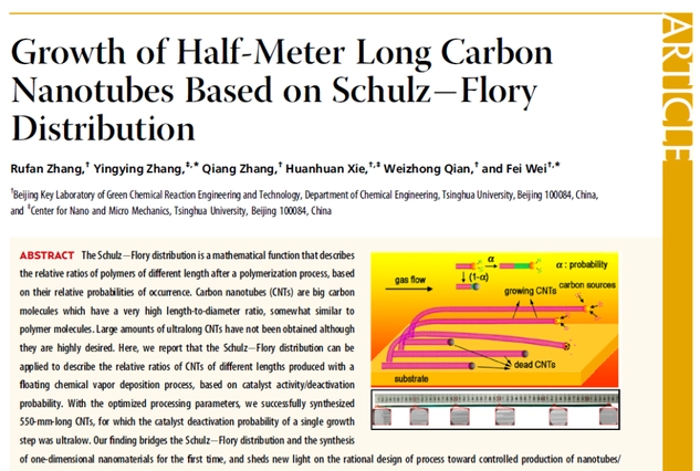 經(jīng)過多年的研究與實踐,中國在碳納米管技術(shù)上走在了時代的前沿。上文提到《三體》電視劇中,汪淼背后介紹飛刃材料的PPT中,描述的正是清華大學(xué)魏飛老師課題組合超長碳納米管的相關(guān)內(nèi)容,清華團隊通過創(chuàng)新制備工藝產(chǎn)出超過0.5米,且具有完美結(jié)構(gòu)的碳納米管。