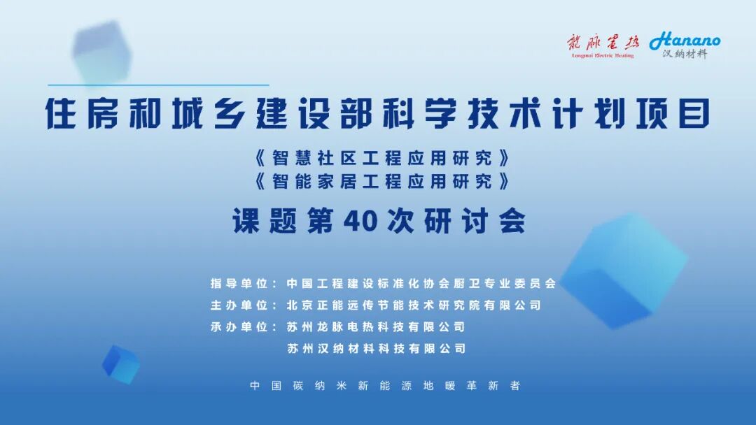 2024年10月13日,由中國工程建設(shè)標準化協(xié)會廚衛(wèi)專業(yè)委員會指導(dǎo),由北京正能遠傳節(jié)能技術(shù)研究院有限公司主辦,蘇州龍脈電熱科技有限公司、蘇州漢納材料科技有限公司承辦的住房和城鄉(xiāng)建設(shè)部科技計劃項目《智慧社區(qū)工程應(yīng)用研究》、《智能家居工程應(yīng)用研究》課題第40次研討會在蘇州納米城成功召開。